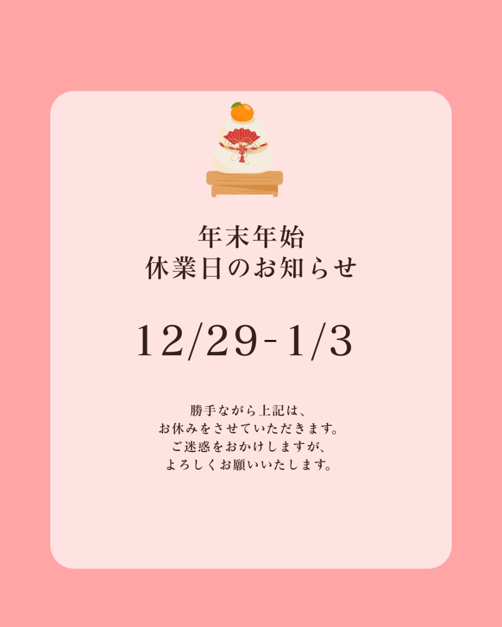 年明けは、4日から営業いたします。