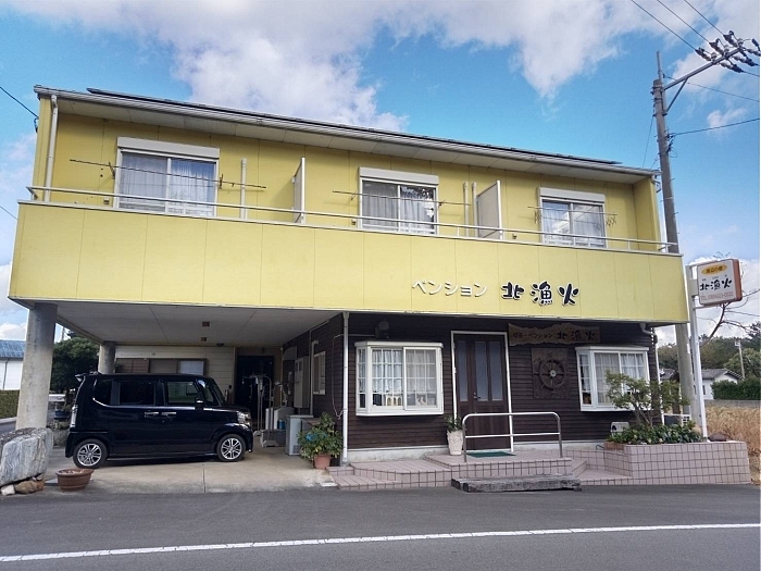 蒲生田岬に1軒だけある民宿ですが、お客様の癒しになるようまごごろを込めたおもてなしと料理を心掛けています。近くには風光明媚な蒲生田岬灯台、絶景の秘湯【かもだ岬温泉】があります。